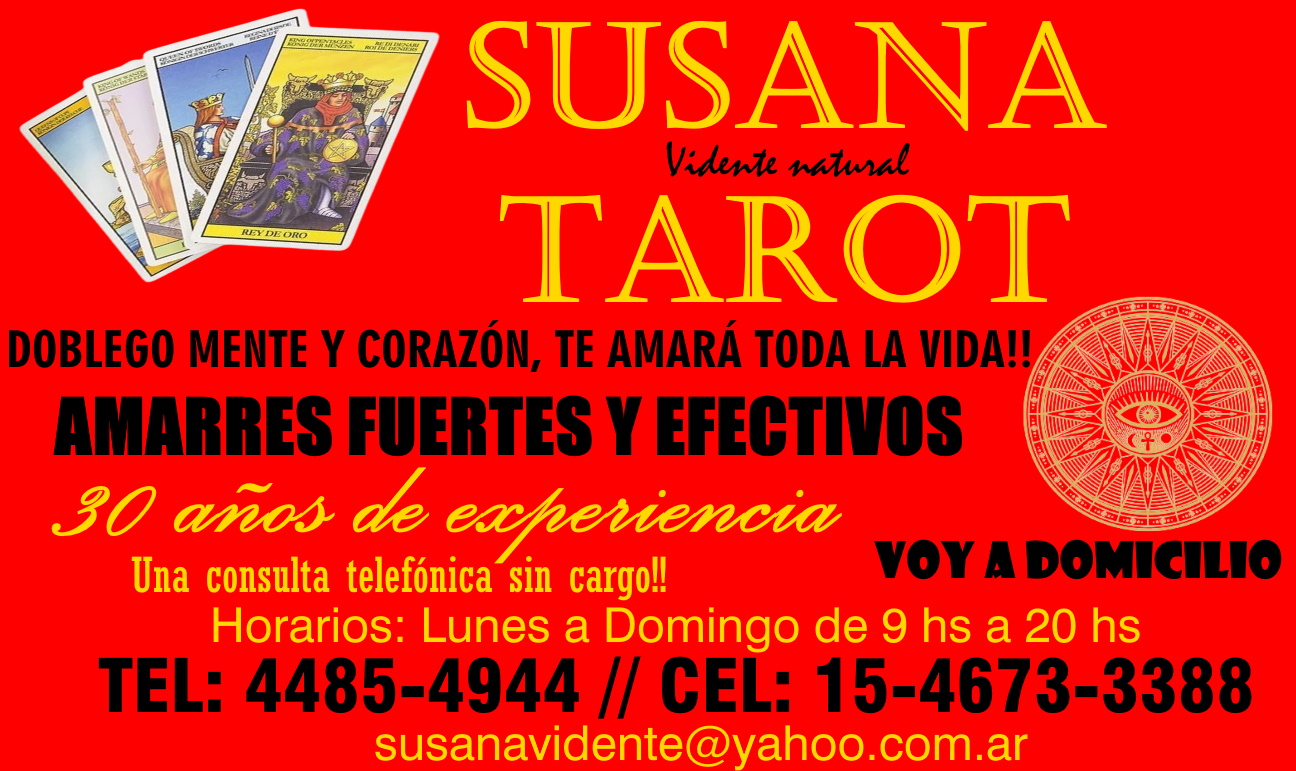 En TAROT "SUSANA" usted puede confiar, más de 30 años de trayectoria en la zona nos avalan, siempre brindando lo mejor de nosotros con responsabilidad y seguridad absoluta.